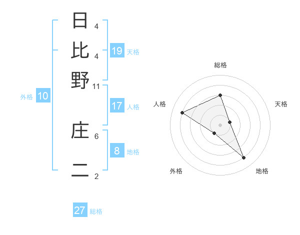 日比野 庄二さんを姓名の画数から五運を鑑定