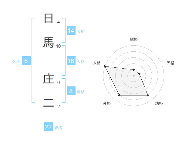 日馬 庄二さんを姓名の画数から五運を鑑定