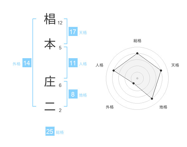 椙本 庄二さんの総格は25画の4点!