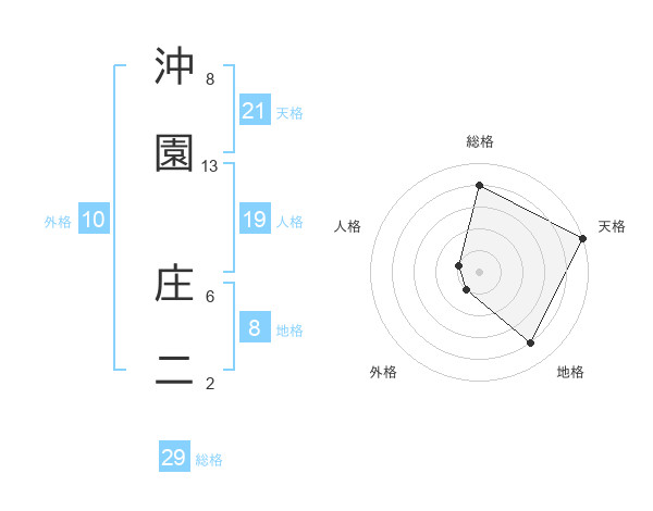沖園 庄二さんの総格は29画の4点!
