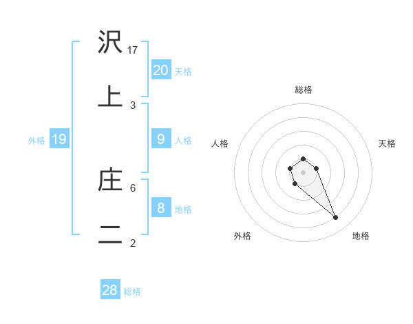 沢上 庄二さんを姓名の画数から五運を鑑定