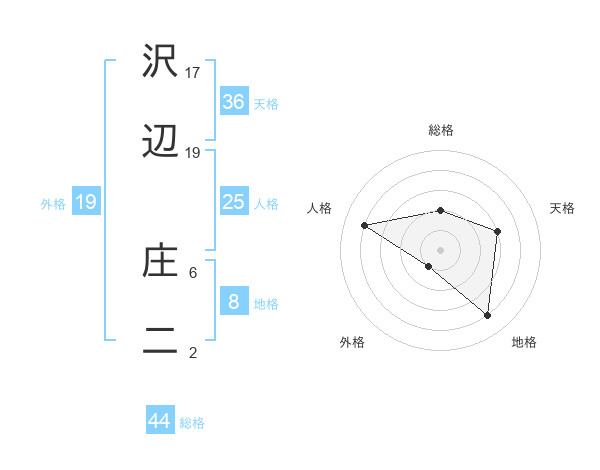 沢辺 庄二さんの総格は44画の2点!