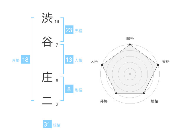 渋谷 庄二さんを姓名の画数から五運を鑑定