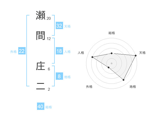 瀬間 庄二さんを姓名の画数から五運を鑑定