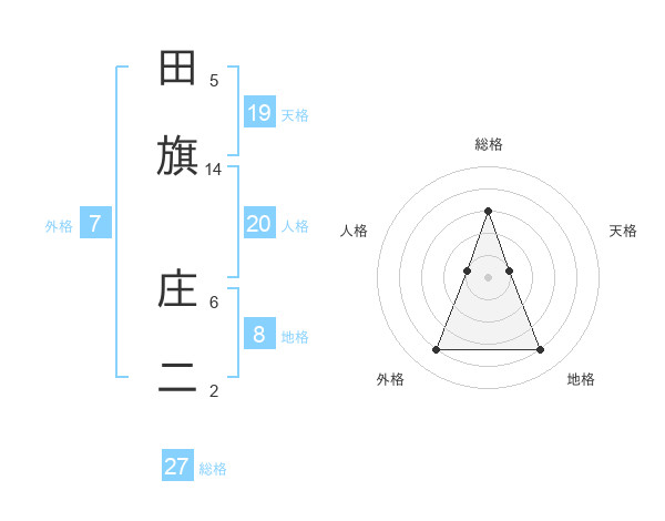 田旗 庄二さんを姓名の画数から五運を鑑定