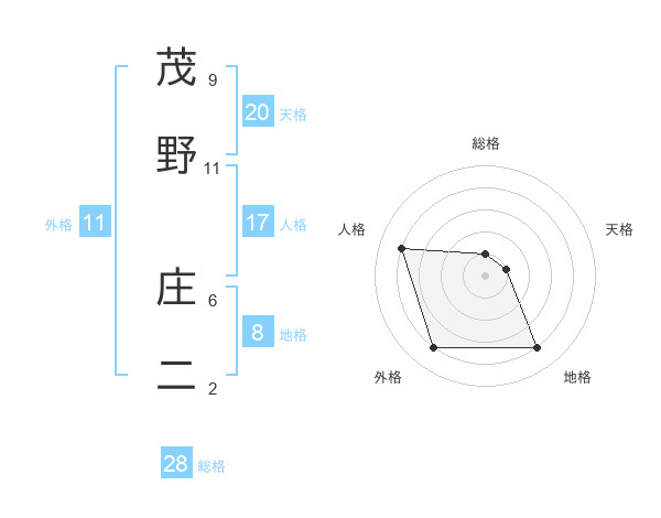 茂野 庄二さんの総格は28画の1点!