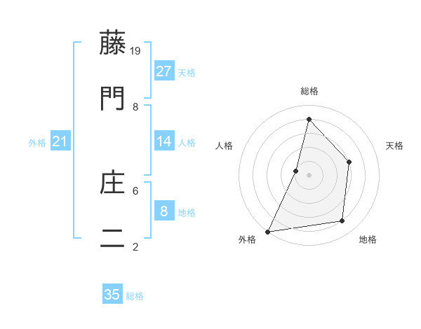 藤門 庄二さんを姓名の画数から五運を鑑定