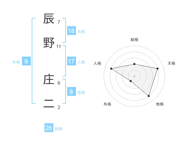 辰野 庄二さんの総格は26画の2点!