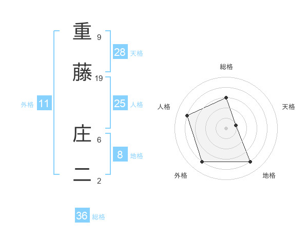 重藤 庄二さんの地格は8画の4点!