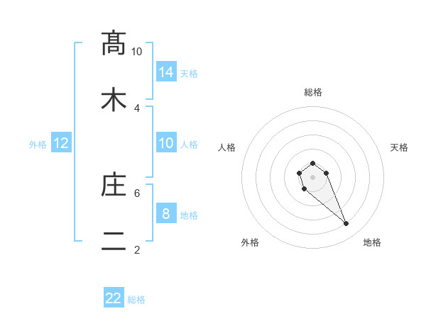 髙木 庄二さんの総格は22画の1点!