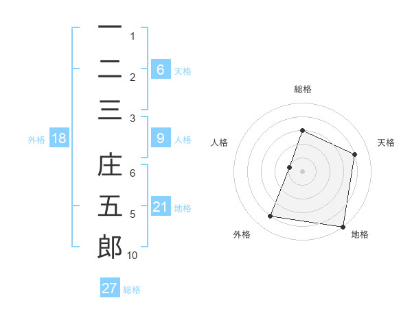 一二三 庄五郎さんの総格は27画の3点!