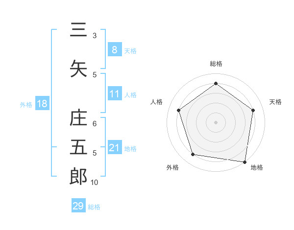三矢 庄五郎さんを姓名の画数から五運を鑑定