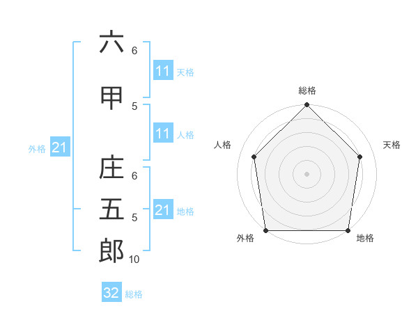 六甲 庄五郎さんを姓名の画数から五運を鑑定