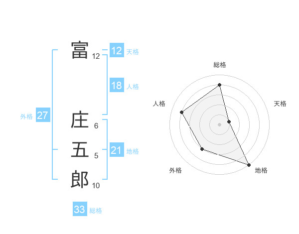 富 庄五郎さんを姓名の画数から五運を鑑定