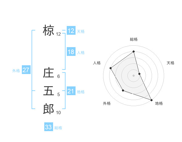 椋 庄五郎さんを姓名の画数から五運を鑑定