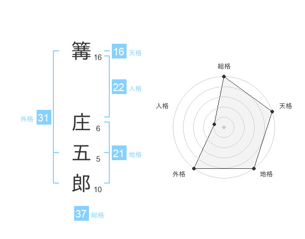 篝 庄五郎さんの総格は37画の5点!