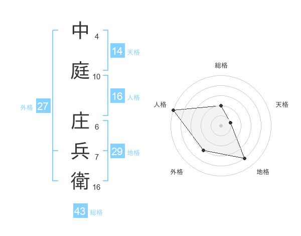 中庭 庄兵衛さんの総格は43画の2点!