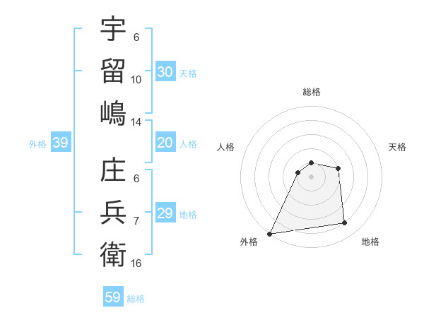 宇留嶋 庄兵衛さんの総格は59画の1点!