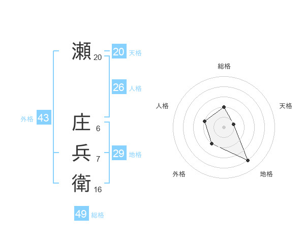 瀬 庄兵衛さんを姓名の画数から五運を鑑定