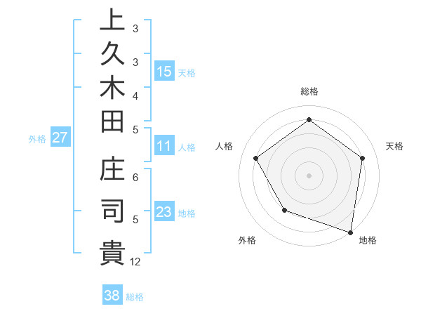上久木田 庄司貴さんの地格は23画の5点!