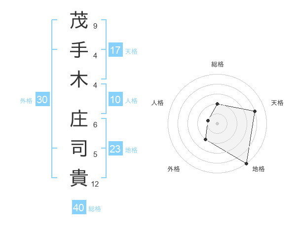 茂手木 庄司貴さんを姓名の画数から五運を鑑定