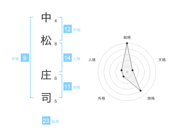 中松 庄司さんの総格は23画の5点!