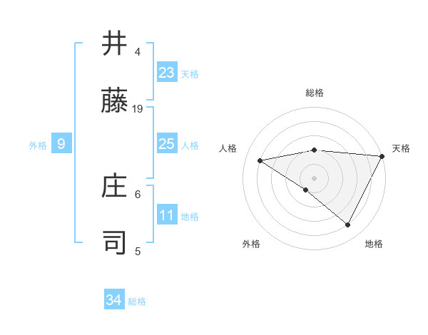 井藤 庄司さんを姓名の画数から五運を鑑定