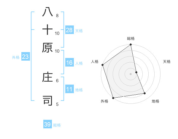 八十原 庄司さんを姓名の画数から五運を鑑定