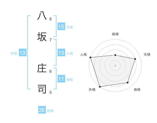 八坂 庄司さんを姓名の画数から五運を鑑定