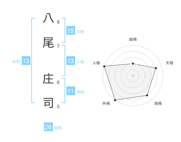 八尾 庄司さんの総格は26画の2点!