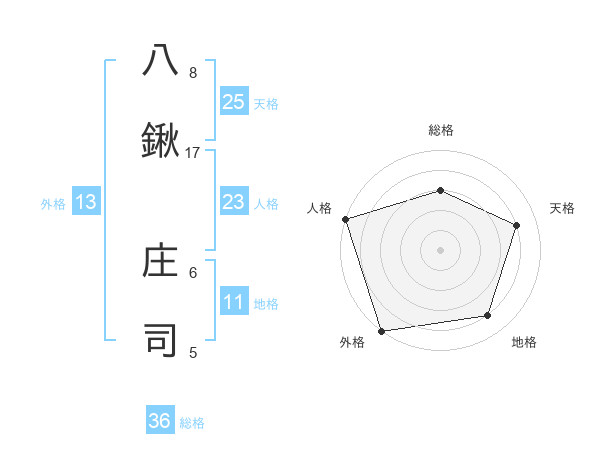 八鍬 庄司さんの外格は13画の5点!