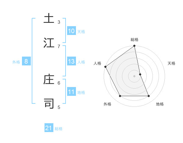 土江 庄司さんの総格は21画の5点!