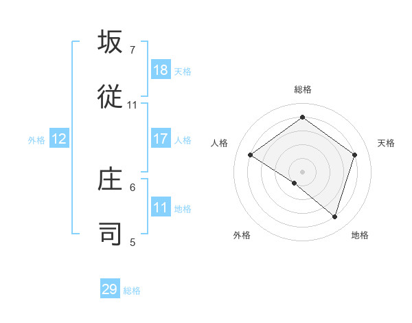 坂従 庄司さんを姓名の画数から五運を鑑定