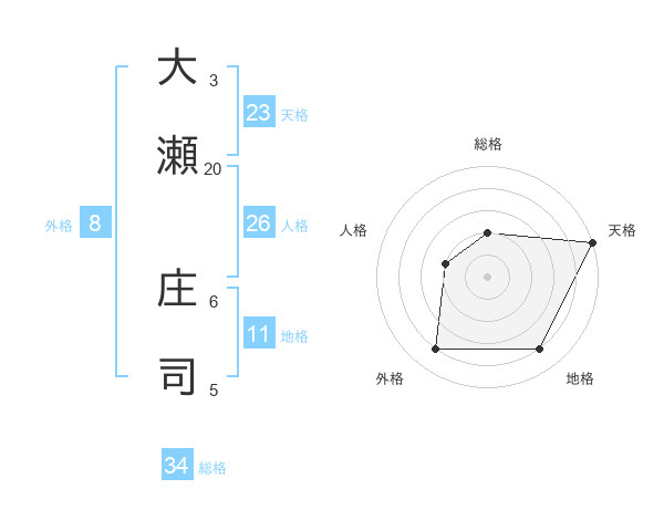 大瀬 庄司さんを姓名の画数から五運を鑑定