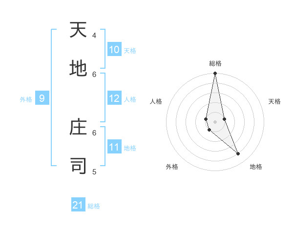 天地 庄司さんの総格は21画の5点!