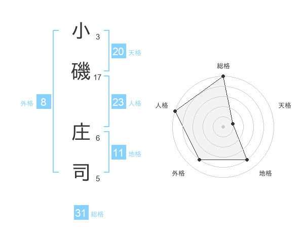 小磯 庄司さんの総格は31画の5点!