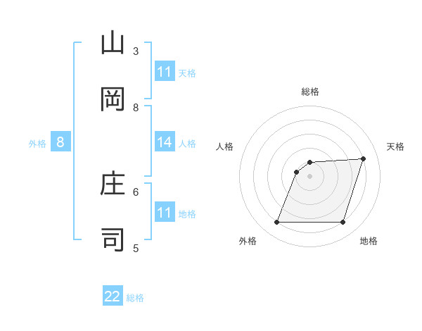 山岡 庄司さんの総格は22画の1点!