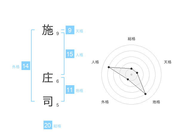 施 庄司さんの総格は20画の1点!