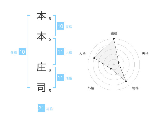 本本 庄司さんの総格は21画の5点!