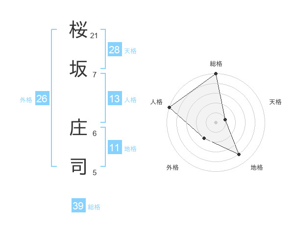 桜坂 庄司さんを姓名の画数から五運を鑑定