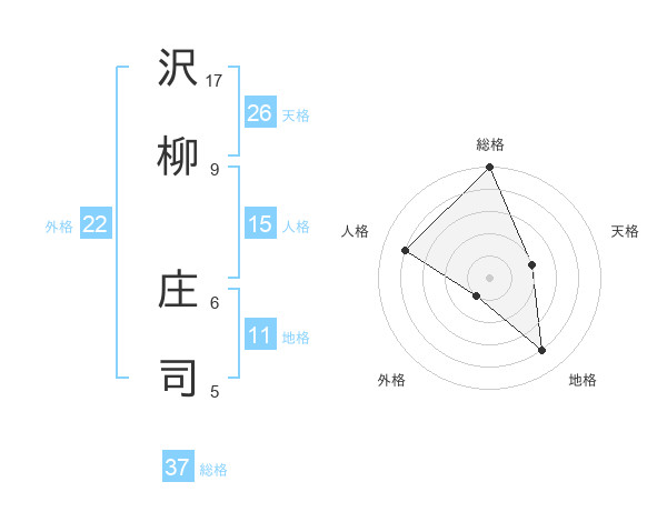 沢柳 庄司さんの総格は37画の5点!