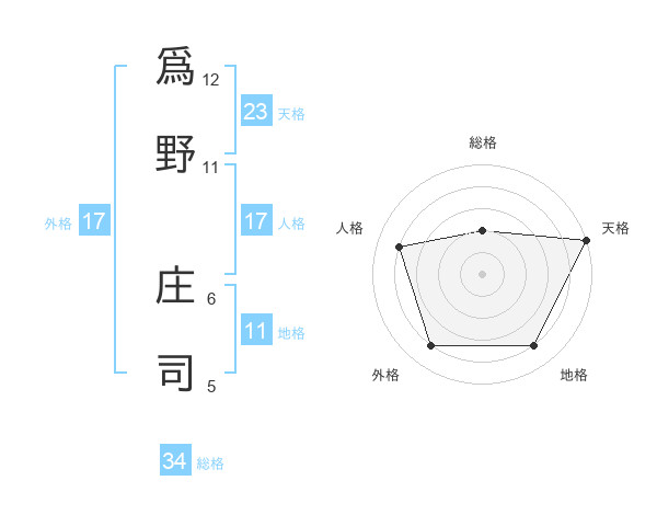 爲野 庄司さんを姓名の画数から五運を鑑定