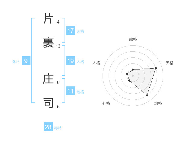 片裏 庄司さんを姓名の画数から五運を鑑定