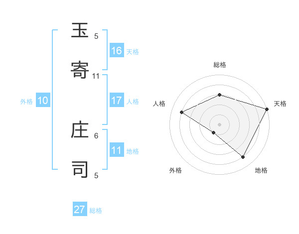 玉寄 庄司さんの天格は16画の5点!