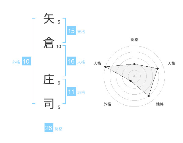 矢倉 庄司さんの総格は26画の2点!