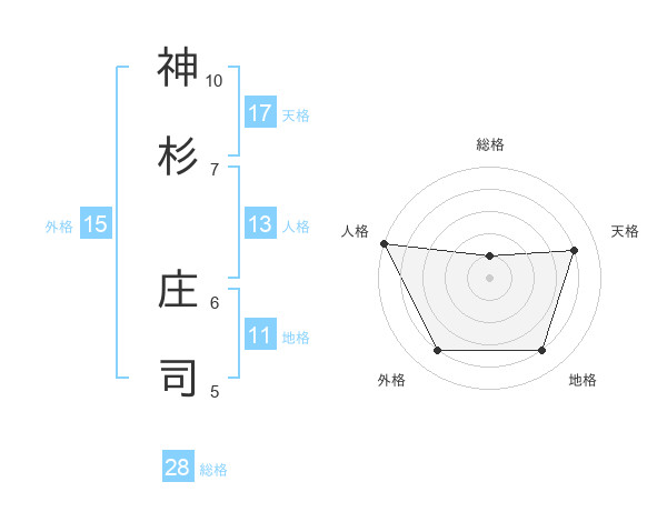 神杉 庄司さんを姓名の画数から五運を鑑定