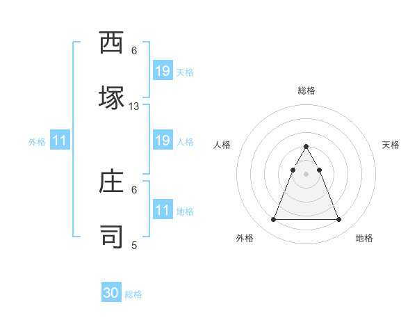 西塚 庄司さんの総格は30画の2点!