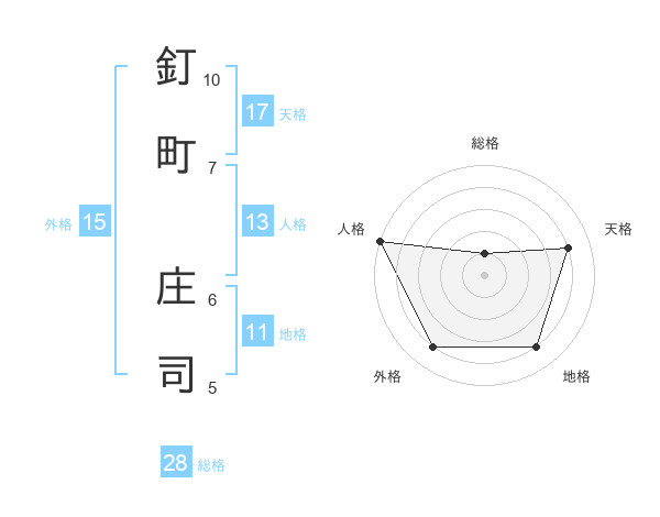 釘町 庄司さんを姓名の画数から五運を鑑定