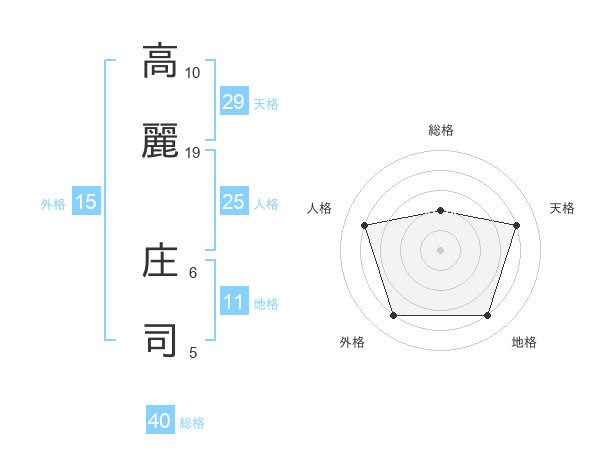 高麗 庄司さんを姓名の画数から五運を鑑定