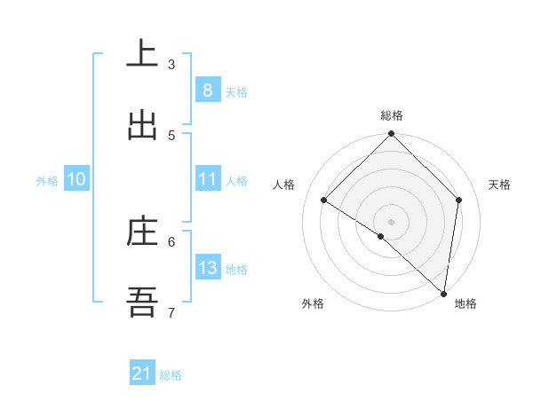 上出 庄吾さんを姓名の画数から五運を鑑定